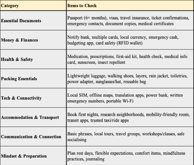 This comprehensive solo travel checklist ensures you stay safe, organised, and comfortable — so you can focus on enjoying your journey, not worrying about what you forgot.